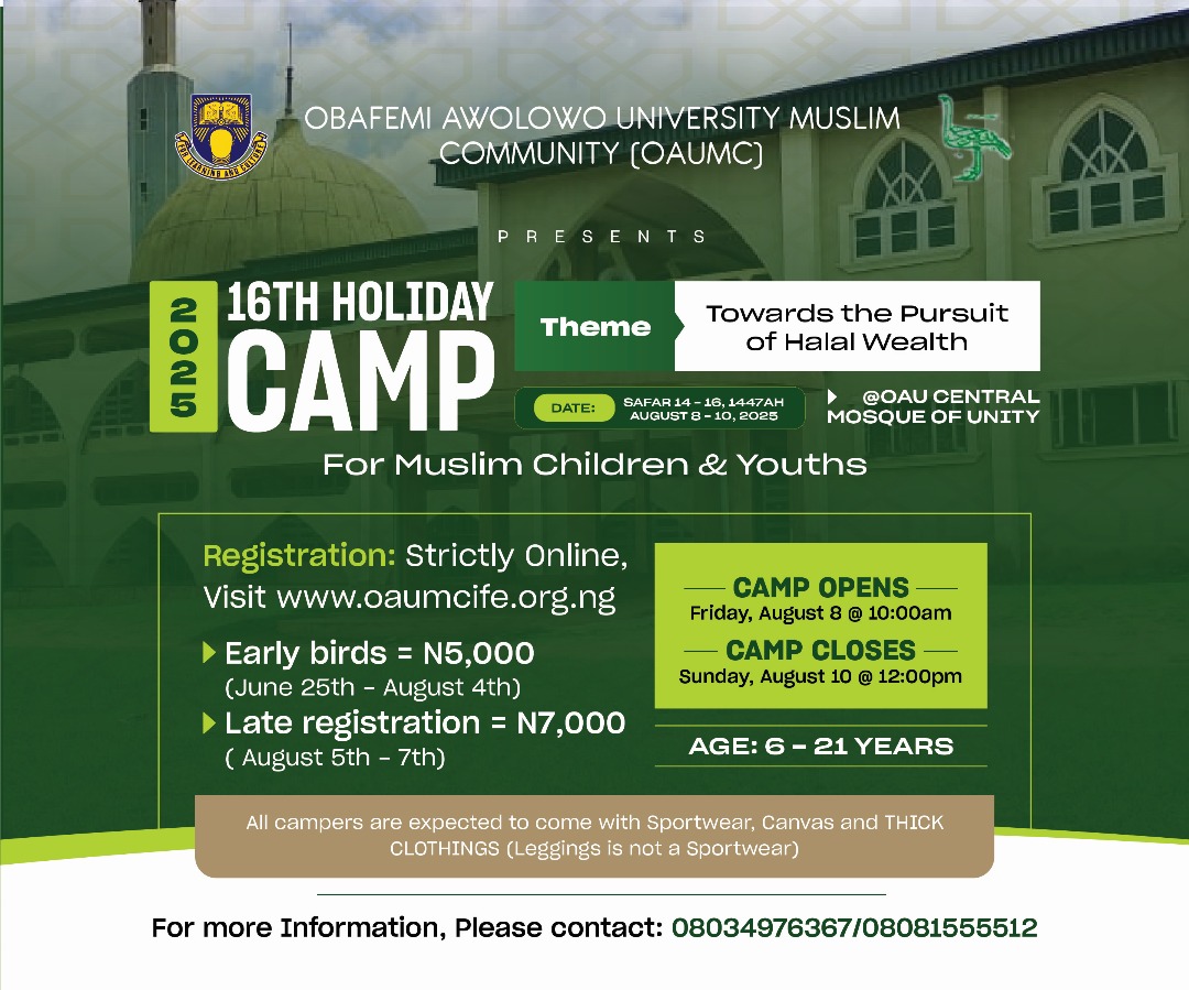 Safar 14th – 16th 1447AH (Friday, August 8 – Sunday, August 10 2025) | Camp opens Friday, August 8, 2025 and closes Sunday, August 10 | OAUMC Central Mosque of Unity